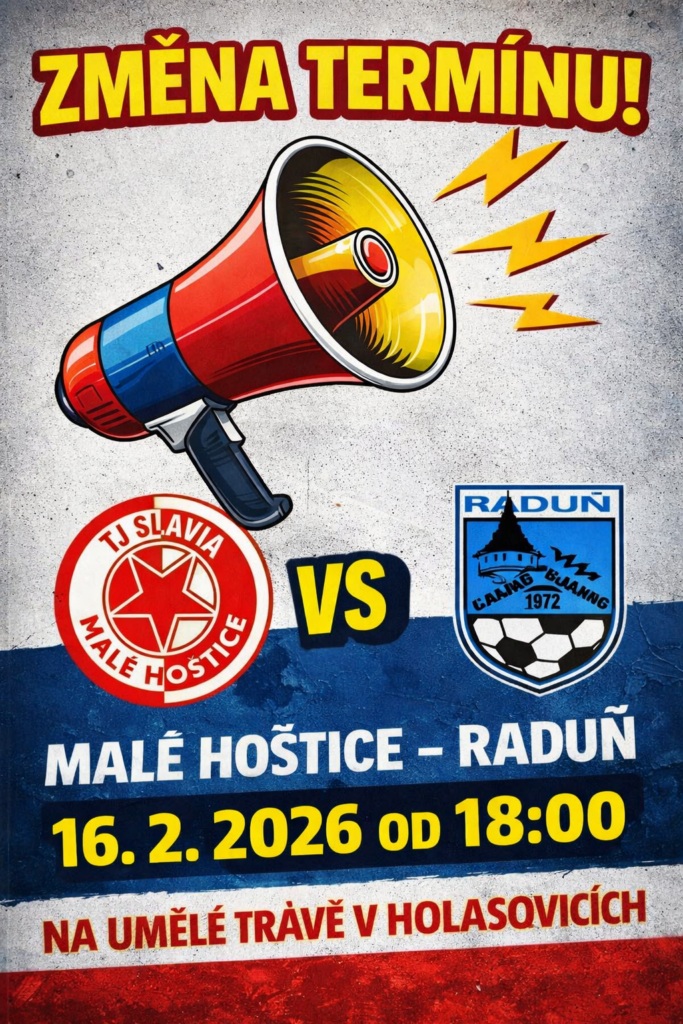 změna termínu a místa utkání proti Raduni (pondělí 16.2. 18:00 UT Holasovice)